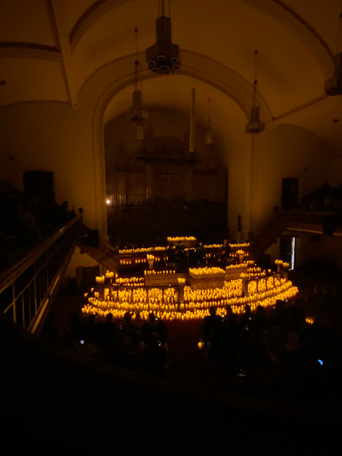 The event was held in a beautiful old church and the quartet was set up surrounded by candles in the front of the church with a massive pipe organ dimly visible behind them. It created a really appropriate setting for the music. The experience was a unique and very enjoyable evening that I can highly recommend if the series comes to your city.